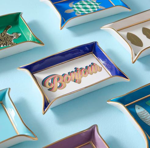 A nod to 70s pop art, our colorfully trippy typography is laced with real sparkly gold. Crafted from high-fired porcelain and packaged in a nifty gift box, it makes a perfect hostess present (or pick-me-up for yourself).