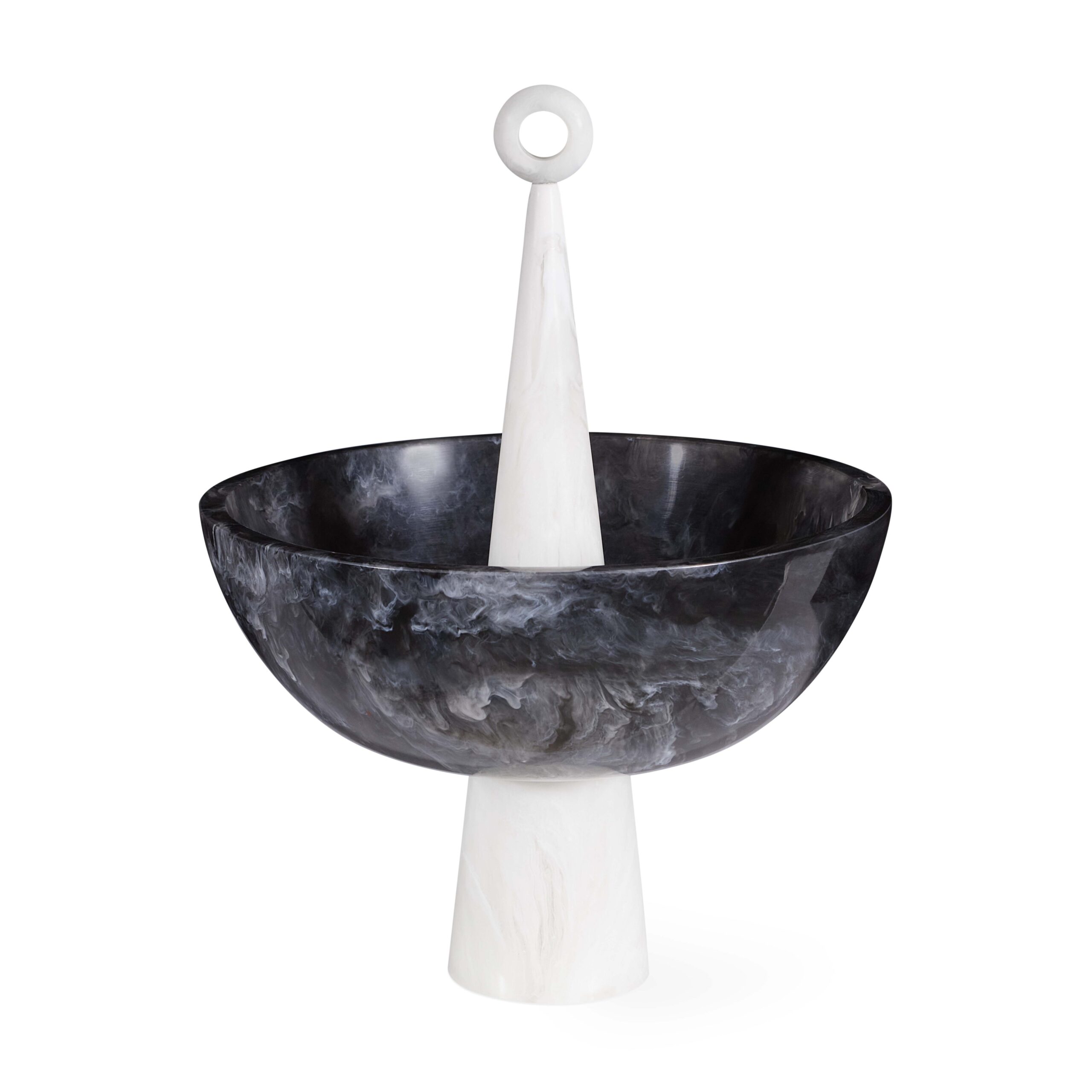 The mesmerizing twist on classic black and white that every modern tablescape needs. Fabulous filled with fruit and just as attention-getting without. Our Como vessels pair dimensional tones with bold Memphis-y geometrics. Each piece is hand-poured to create a unique marbleized finish, then polished to luminous perfection. Style them together to create a monumental moment.